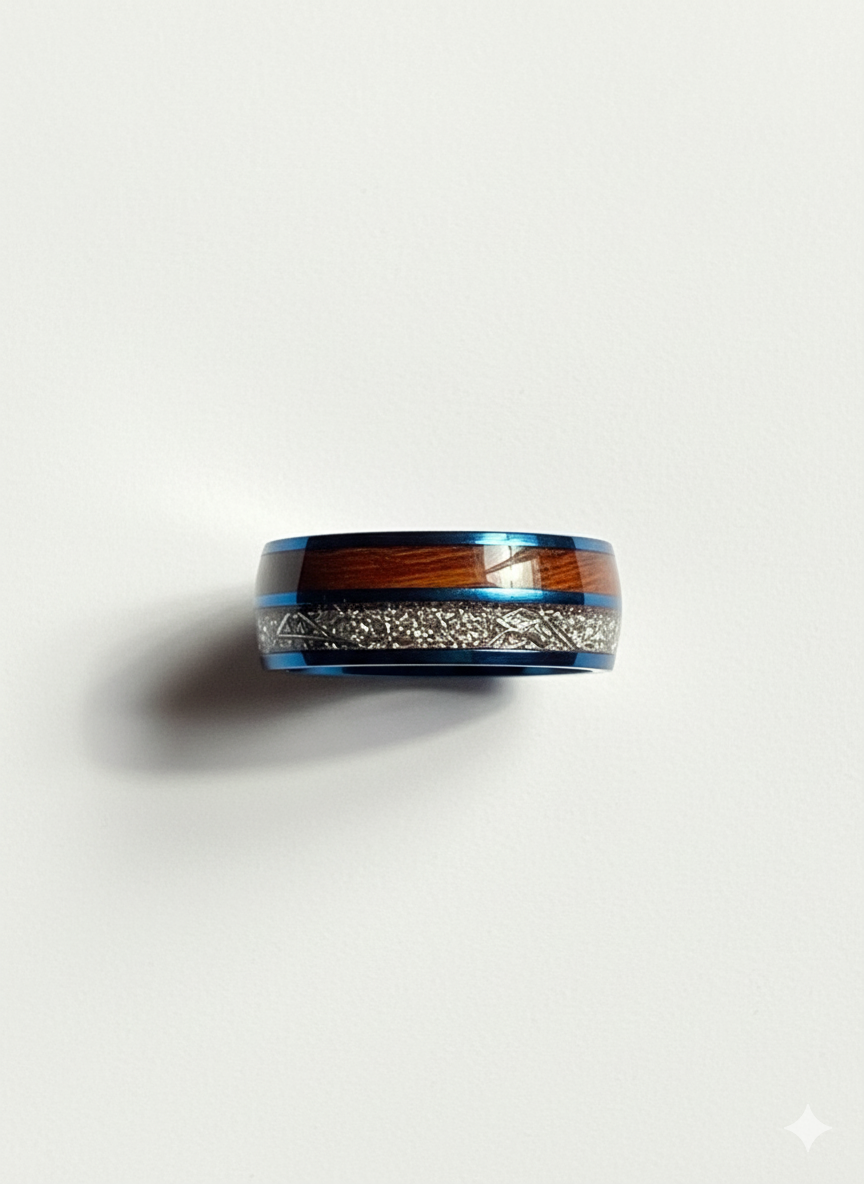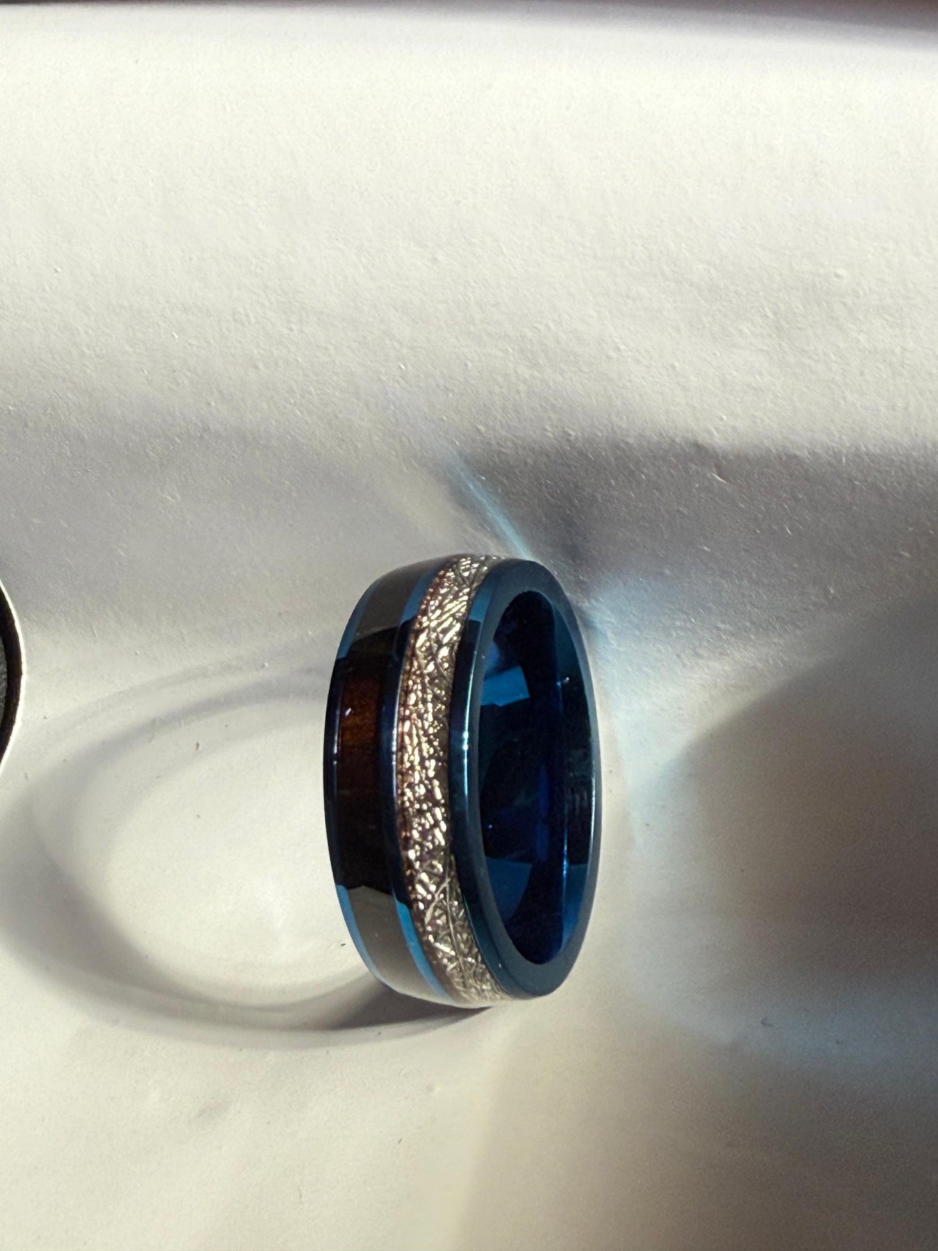 Command attention with a ring that perfectly blends textures and colors. This piece features a vibrant, polished electric blue band that frames a bold center of smooth jet black and a unique crushed silver inlay. This triple-layer design creates a sense of depth and style that's both elegant and rugged.Crafted from tough tungsten carbide, this ring is designed to be as resilient as it is visually stunning, resisting scratches and wear from daily use. The polished finish and comfortable inner band ensure it feels great all day long. This ring is ideal for anyone who appreciates a design that is both complex and striking.